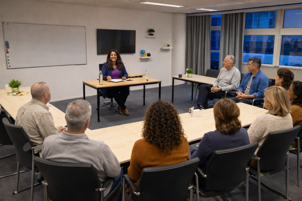 Tijdens de groepssessies creëren we een omgeving waarin deelnemers hun ervaringen kunnen delen, naar elkaar kunnen luisteren en nieuwe perspectieven kunnen ontdekken.